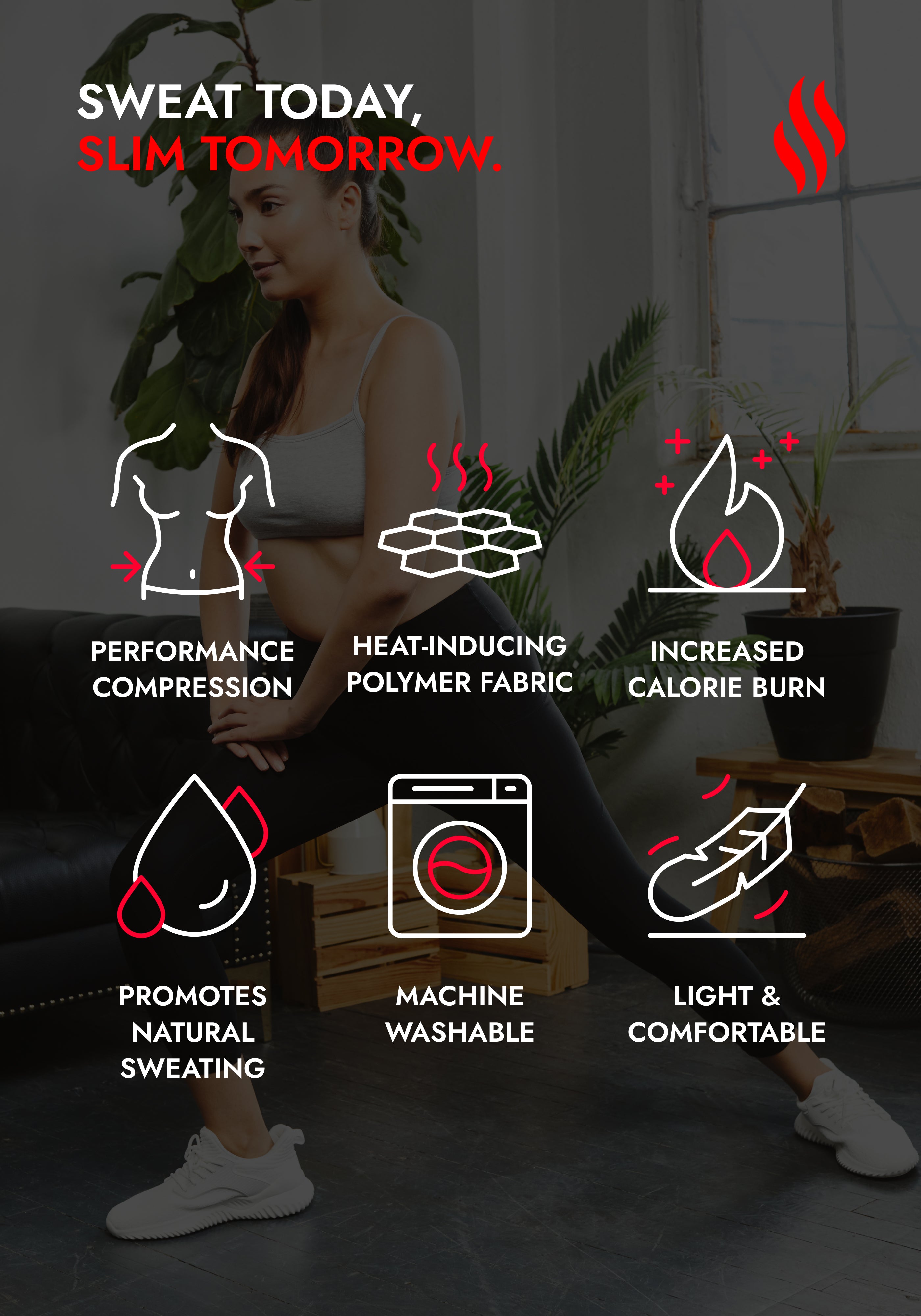 Experience enhanced support during your workout with Sweat Shaper's all-new compression leggings. Designed for effective workouts, these leggings provide comfortable compression that aids in blood flow, helps reduce muscle fatigue, and offers added stability. Our blend of performance compression and polymer fabrics naturally retains warmth, creating a comfortably warming effect. With expert contouring from mid-rise to mid-calf, these leggings offer a smooth and supportive fit. Sweat Shaper leggings help protect against chafing and feature a stay-put waistband, so you can stay focused on your goals. Lightweight and comfortable, allowing for a full range of motion during workouts, cardio, and daily activities. Machine washable for easy care.