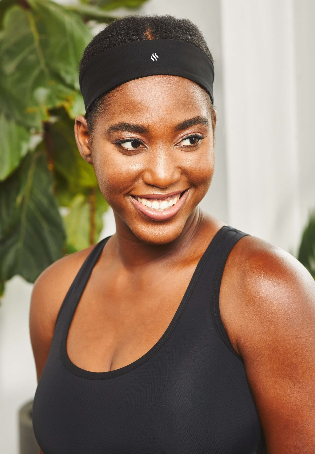 Tame flyaways and stay focused with our moisture-wicking headband, designed for a secure, comfortable fit. Made with a four-way stretch fabric and a soft velvet inner liner, it stays in place no matter the movement. Crafted from a breathable Nylon-Lycra blend, this headband helps you feel cool and comfortable through every workout. Easy to clean—just toss it in the wash.