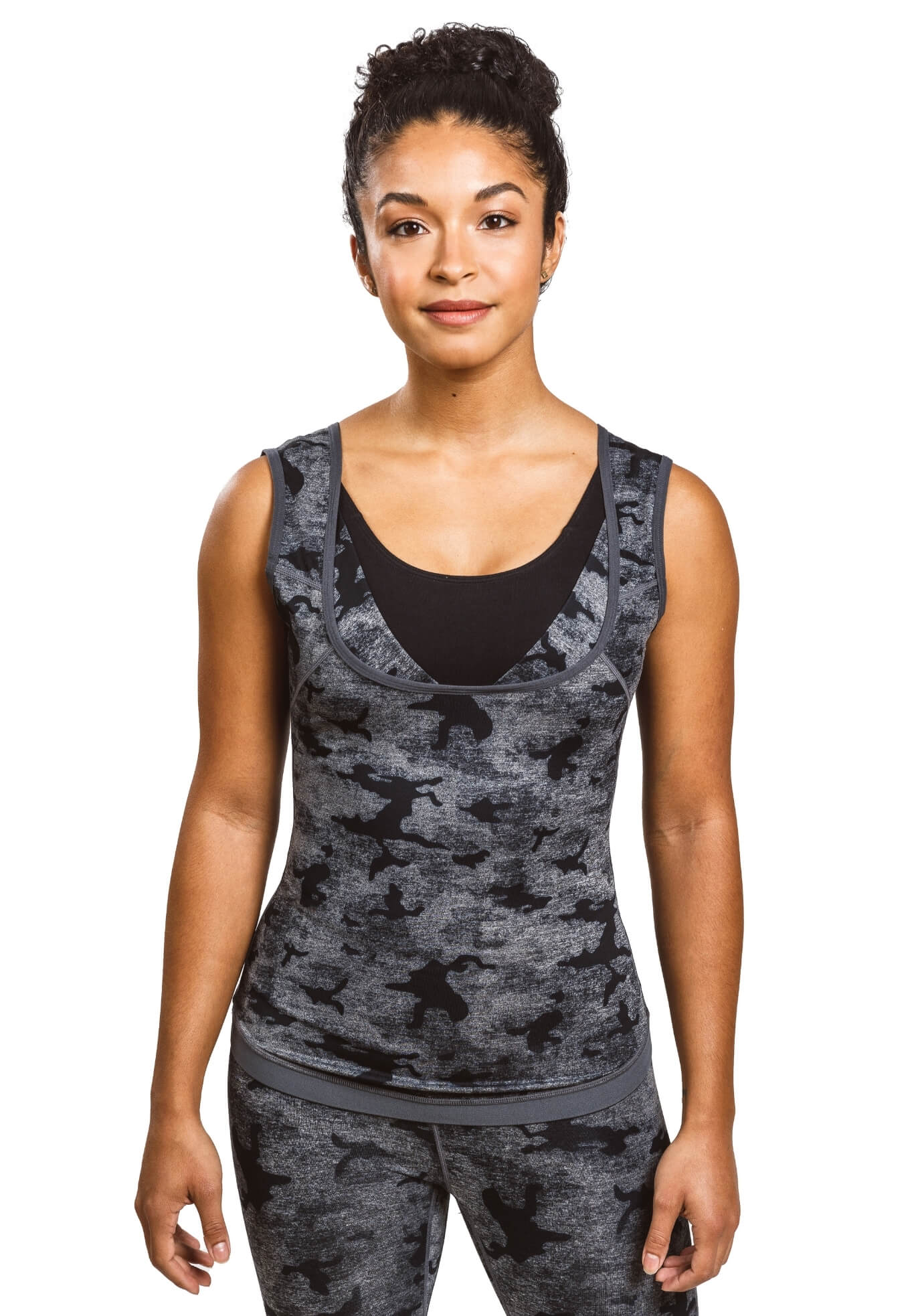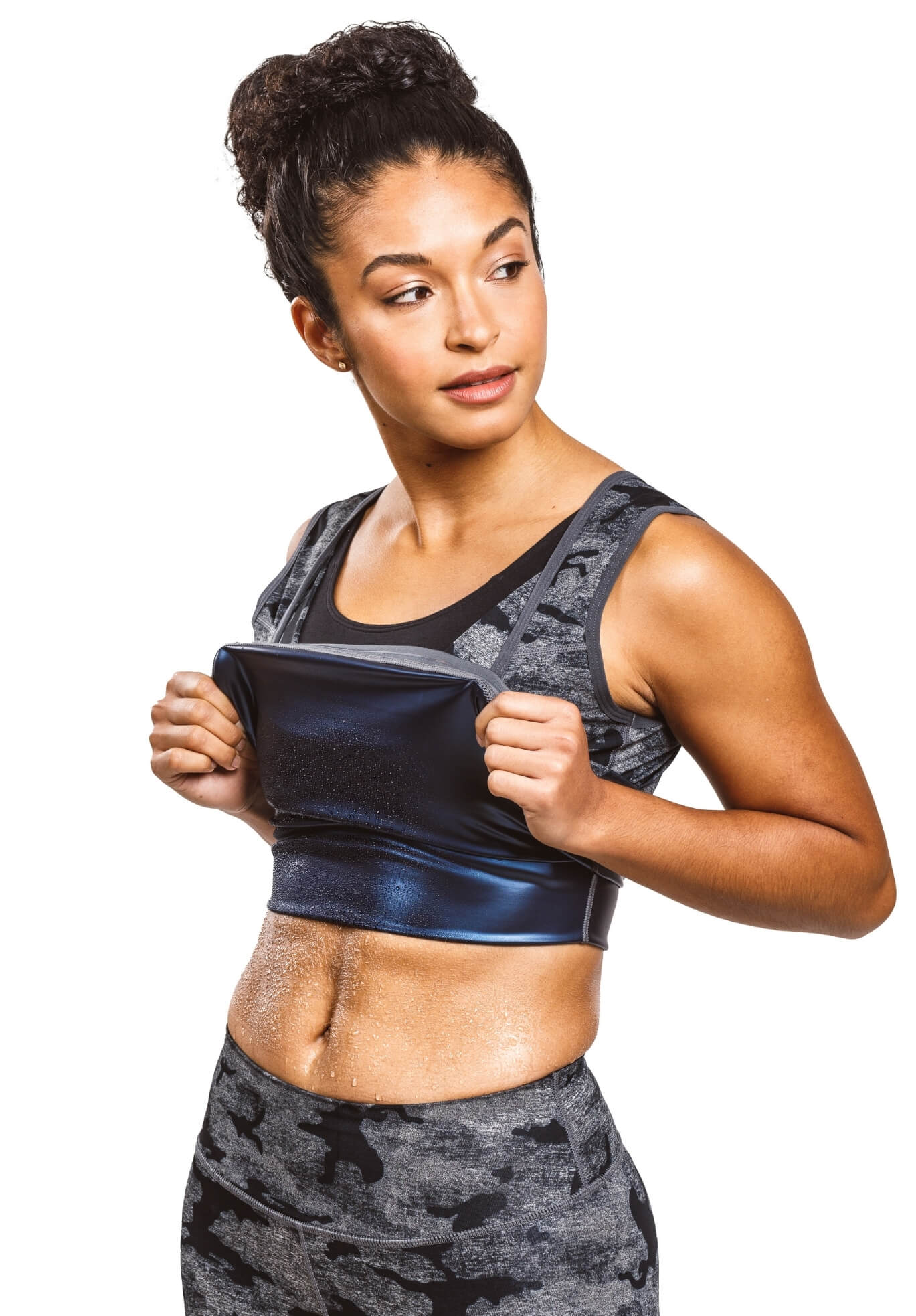 Enjoy a smoother figure instantly with the patented Sweat Shaper Women's Athletic Tank. Our design eliminates love handles and minimizes jiggle, so you can feel confident and comfortable during sweat-soaked workouts. Sweat Shaper combines an exclusive blend of performance compression and polymer fabrics that work together to accelerate your natural body heat and create an intense sauna-like experience. Built to improve recovery and prevent muscle strain, our tank hugs every inch of your torso for 360 degrees of compression, support, and sweat induction so you get the most out of every workout.