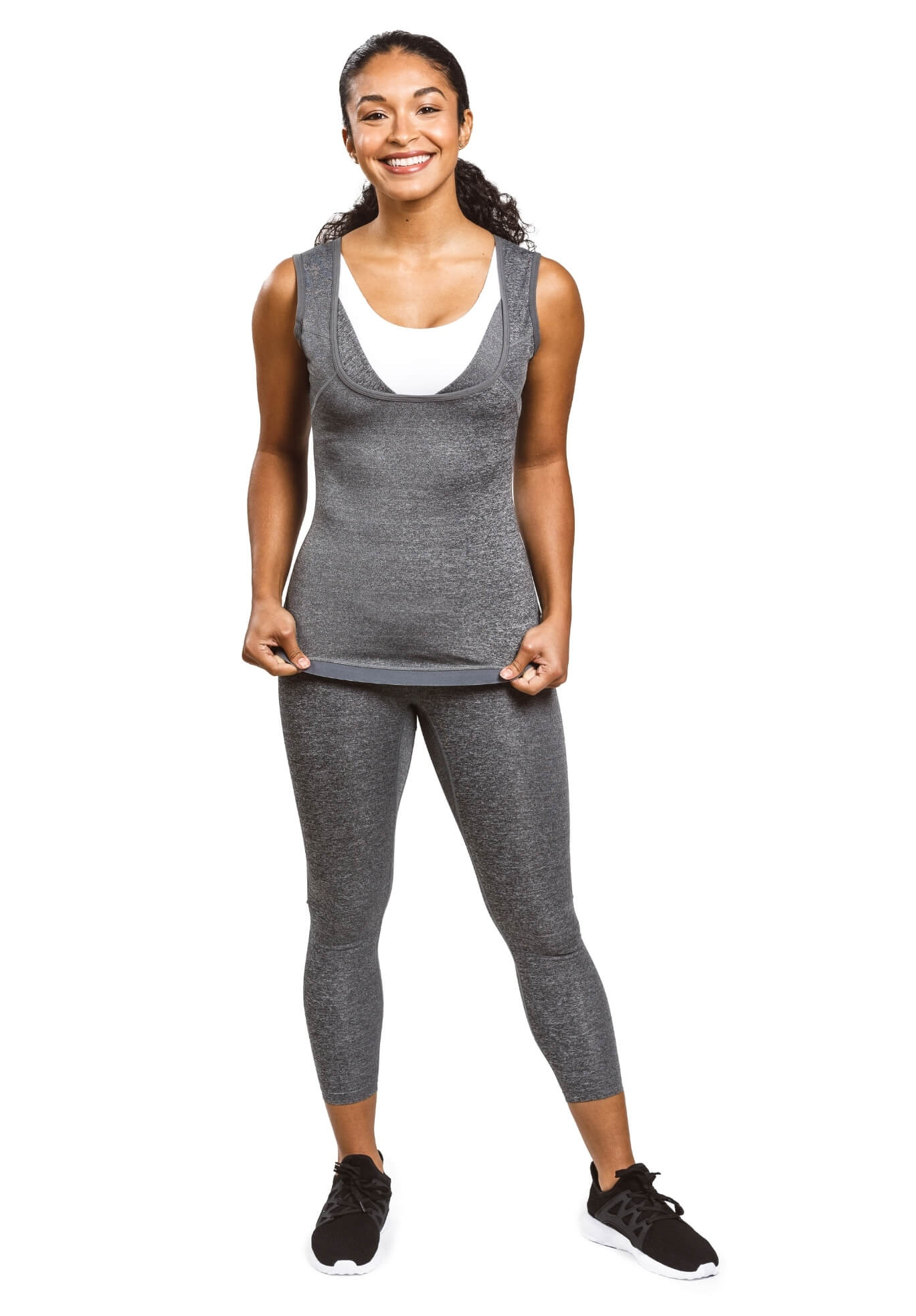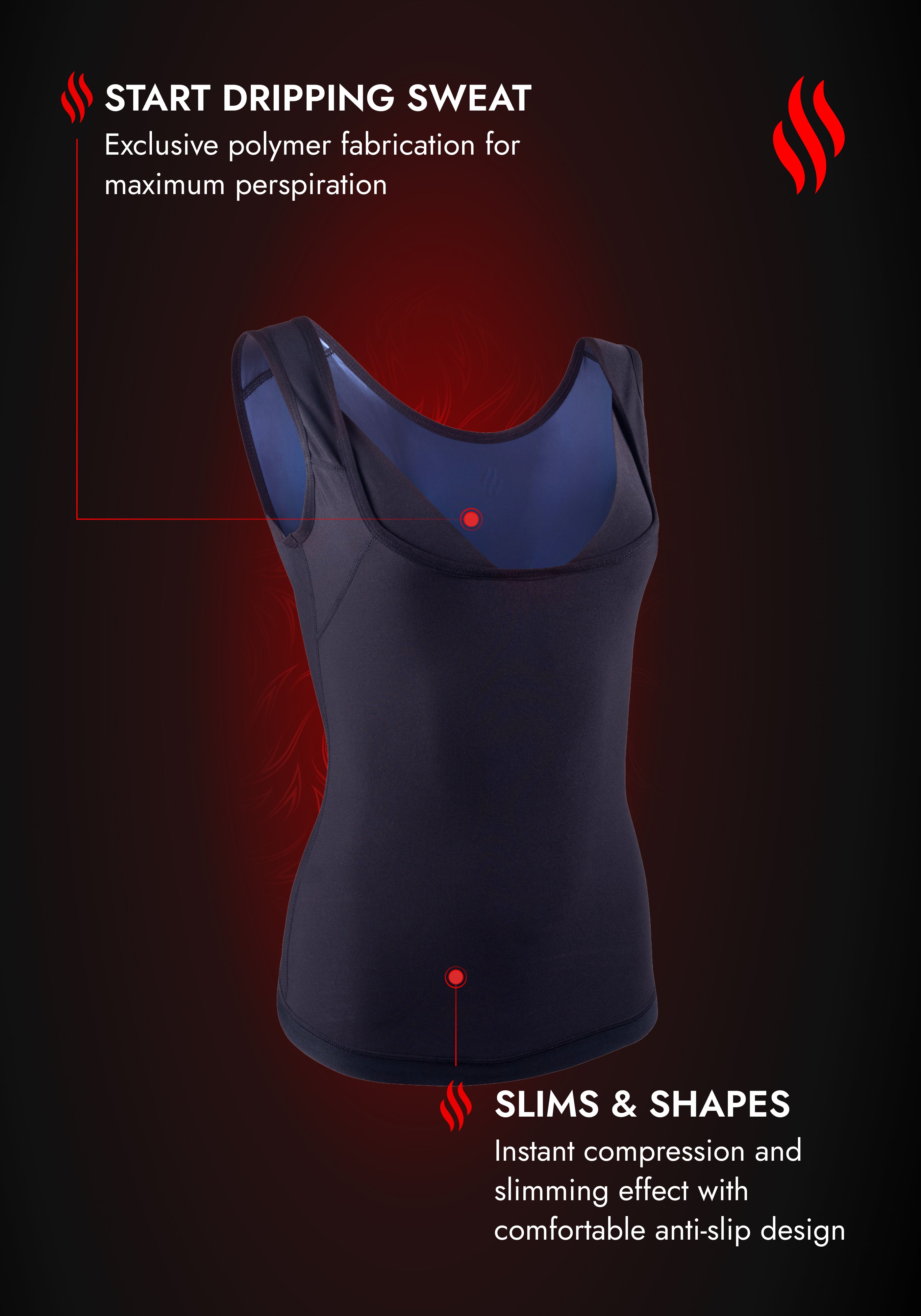 Enjoy a smoother figure instantly with the patented Sweat Shaper Women's Athletic Tank. Our design eliminates love handles and minimizes jiggle, so you can feel confident and comfortable during sweat-soaked workouts. Sweat Shaper combines an exclusive blend of performance compression and polymer fabrics that work together to accelerate your natural body heat and create an intense sauna-like experience. Built to improve recovery and prevent muscle strain, our tank hugs every inch of your torso for 360 degrees of compression, support, and sweat induction so you get the most out of every workout.