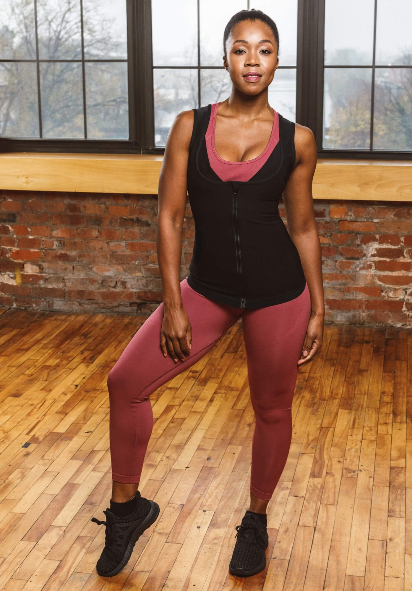 This Zip Tank really works. I sweat really hard already, but wearing this makes me sweat much, much more. I have to wear a t-shirt under it because it shows to much clevage and boobs. I purchased this one, the t-shirt, the leggings, the arm bands, and the waist band.